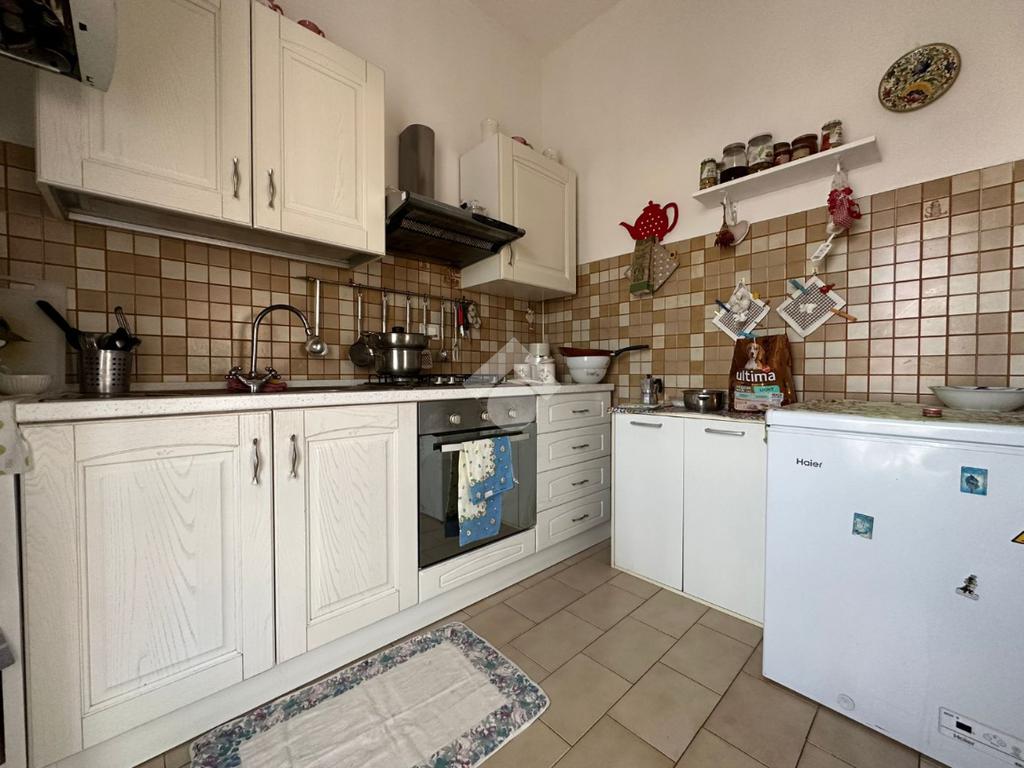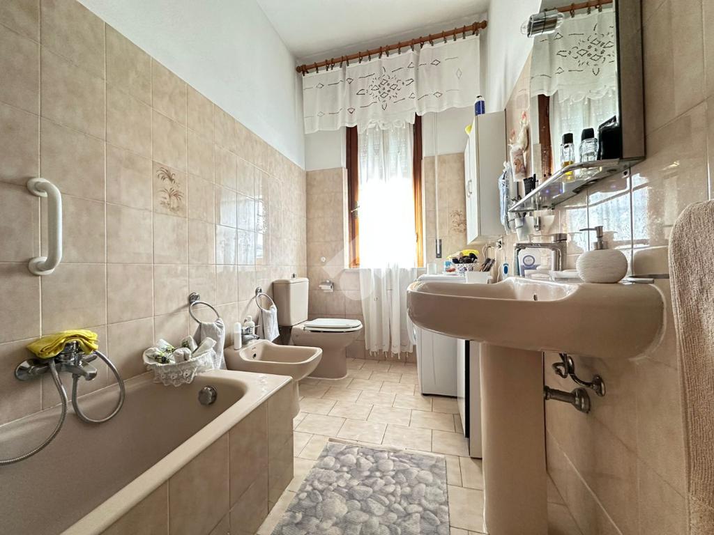 L'immobile, sito al primo piano, molto ampio e luminoso, è composto da tre camere da letto matrimoniali, uno spazioso soggiorno, una cucina abitabile e sala da pranzo; il bagno è finestrato e dotato di vasca.